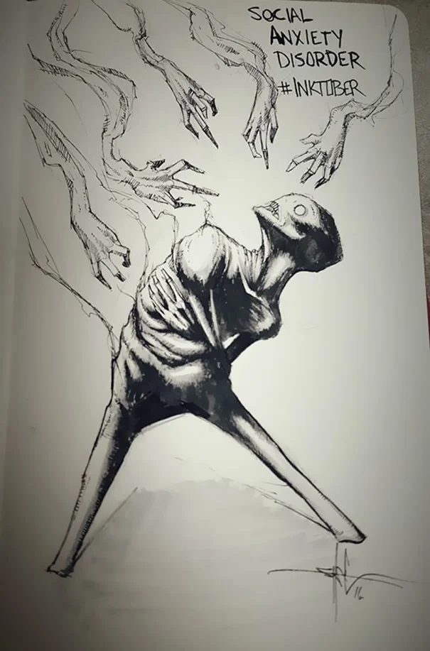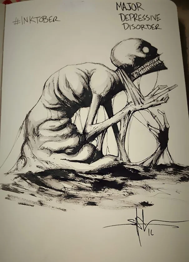 Every year thousands of artists take part in Inktober, where every day in October you draw something. Artist, Shawn Coss, decided to change it up and focus his drawings on various mental illnesses which has been getting tons of hits on Bored Panda.